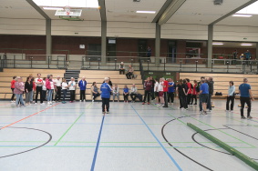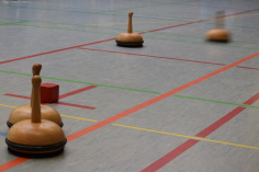Als ich das umfangreiche Sportangebot des Vereins sah, fiel mir das Angebot „Hallenbosseln“ (eine Art Eisstockschießen in einer Sporthalle) auf.