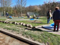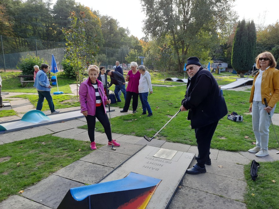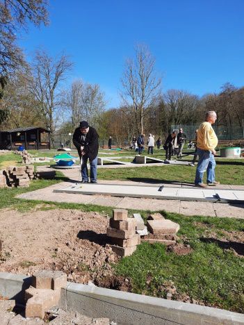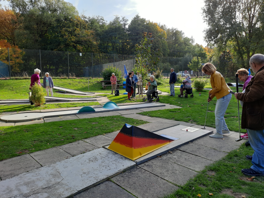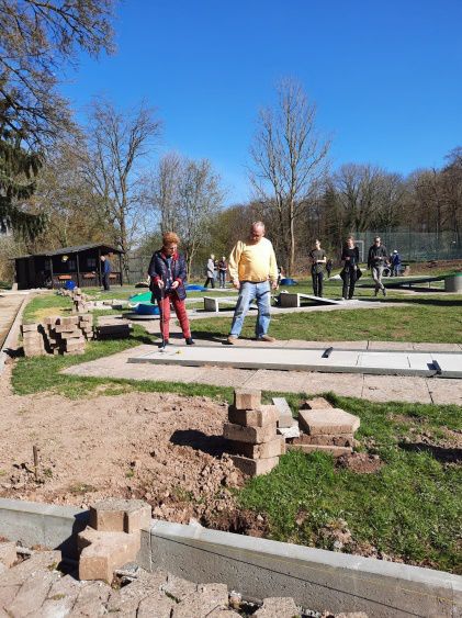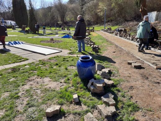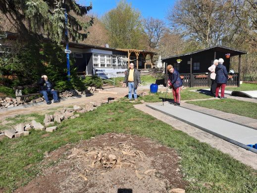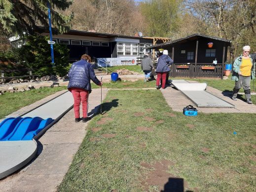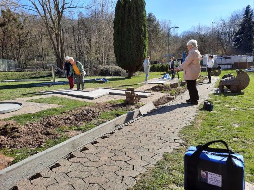 Es macht wieder Spaß Konzentration, Beweglichkeit und Treffsicherheit beim gemeinsamen Minigolf auszutesten. Den sportlichen Ehrgeiz lassen wir sicherlich auch immer wieder einmal aufblitzen, aber bei uns steht nicht unbedingt der sportliche Sieg im Vordergrund, sondern das gemeinsame Miteinander beim Spiel. Frische Luft, gute Laune und Spaß haben sind unsere Motivation, das Spiel bis zum Schluss mit möglichst wenigen Punkten zu beenden. Dabei stört auch nicht die Instandsetzung der Anlage. Es zeigt sich bereits jetzt wie schön es werden wird.