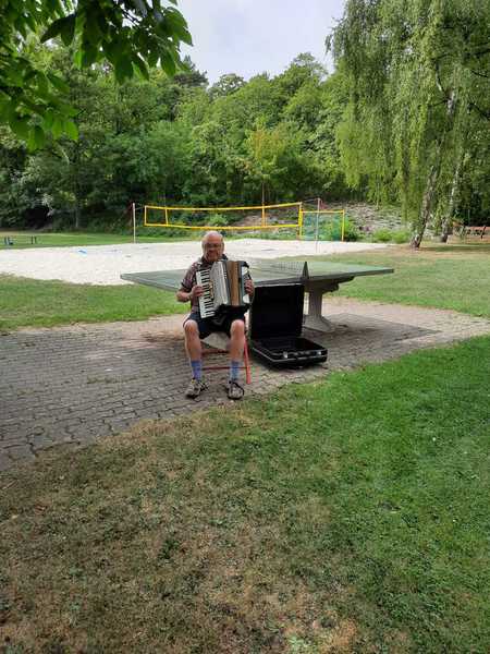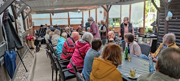 Der einsetzende Regen konnte uns nicht die Laune verderben – es war eine gemütliche Atmosphäre. Karl-Heinz Mull verkündete zur allgemeinen Freude, dass Kaffee und Kuchen vom Vorstand des Vereins gesponsert werden! Da schmeckte alles gleich noch leckerer und es gab viel Applaus.