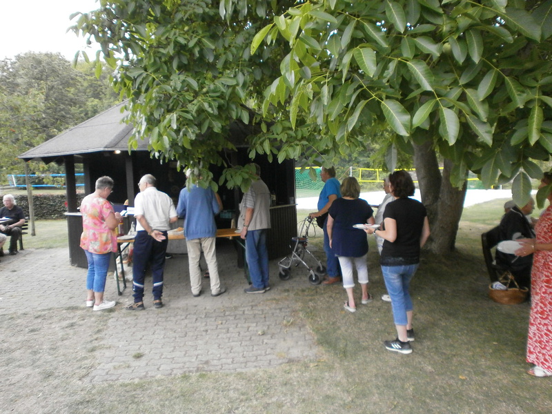 Die Zeit verging so schnell und schon wurden die bestellten Rostbratwürste und Steaks, inklusive Kartoffelsalat serviert. Lecker! Bei netter Unterhaltung ging ein schöner unterhaltsamer Tag; auch trotz des regnerischen Wetters, zu Ende.